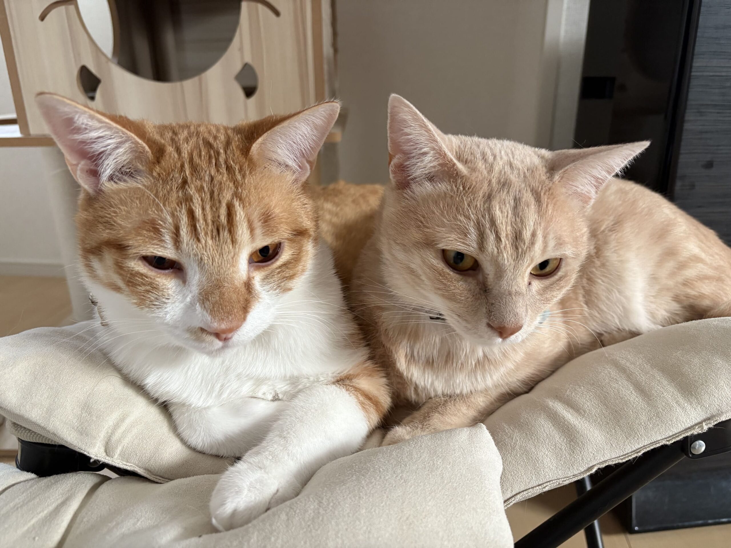 今日は仲良しDAY?2匹でニトリのオットマンにぎゅっと集合 📸 猫フォト日記 X Facebook はてブ LINE Pinterest コピー 2025.12.02 今日は、2匹でニトリのオットマンにぎゅ〜っと並んで寝ていました。 いつもはそれぞれ好きな場所で寝てるのに、今日は仲良しモードだったみたい。 くっついてる姿が本当に可愛くて、写真を撮らずにはいられませんでした…☺️